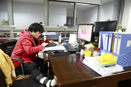 圖為股權投資部李茜茜帶傷工作現場 “每天,我們會第一時間審核各收購點上報的資料,如果發現股東身份證、銀行賬號等信息不準確,我會及時聯系收購點?!必撠煿蓹嗍召徍笈_數據匹配處理、收購款匯總、股權過戶等工作的李茜茜,對待每個環節都十分細致認真,為確保各類數據準確無誤,她都要經過多番核對,當確定下收購款匯總表時,便及時與財務結算中心對接,不讓任何一環掉鏈子。 10月21日,腳不慎扭傷而無法行走的李茜茜,考慮到股權收購正處于緊要關頭,工作量大,數據處理復雜,人手緊缺等各方因素,她放心不下,堅持帶傷上崗,并主動要求家人到單位照顧日常生活,集團辦公室專門調出休息室供其臨時使用。 “我們很理解支持女兒的工作,也很感謝臺州高速對我們的關懷,希望她盡心盡力做好工作。”李茜茜父母自知道女兒受傷那天起,便放下手中事,專門從溫嶺趕來讓女兒安心工作,一家三口助力完成股權收購工作。 據股權投資部副經理楊靜介紹,李茜茜在股權投資部已有兩年,還有股權代理點一線業務經驗,平日好學的她,無論是在業務專業知識還是數據軟件處理上,都非常嫻熟,在這樣的收購關鍵時期,其他人員無法有效代替她的工作。 自集團股權收購工作開展以來,收購一線繁忙的景象每日在“股權收購點工作小組”微信群里呈現,幕后的工作人員也常常加班加點,幾乎沒有正常的上下班時間,受傷的李茜茜同其他人一樣毫無怨言,每日堅持完成各項工作,大家團結一致,確保股權收購順利推進。 陳林偉